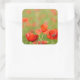 Photo autocollant de fleurs de pavot rouge vibrantes dans un champ vert plein de pavots. Il a une forte émotion de bonheur, printemps et été.