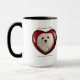 Cette tasse mignonne comporte la perce-neige, un petit chien maltais doux. D'un côté il y a un portrait avec son beau visage entouré par de beaux fleurs et roses de ressort. De l'autre son image est contenue à l'intérieur d'un coeur rouge rouge profond.