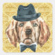 Percival est un Labrador Retriever qui demande à être pris au sérieux...d'où la casquette et la cravate avant soignée. Portrait de chien en aquarelle numérique sur arrière - plan à motif or