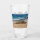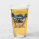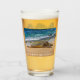 Un verre à pinte avec la tortue verte hawaïenne, avec le graphisme accroché. La partie arrière a l'image complète de la tortue pendue sur la plage de Laniakea Beach. Un souvenir "one of a kind" d'une visite au fabuleux O'ahu.