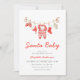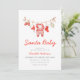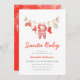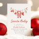 Festive rouge Père Noël inspiré clothesline invitation baby shower dans une couleur rouge riche pour donner le ton de votre événement.