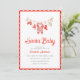 Festive rouge Père Noël inspiré clothesline invitation baby shower dans une couleur rouge riche pour donner le ton de votre événement.