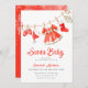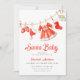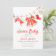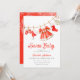 Festive rouge Père Noël inspiré clothesline fille baby shower invitation dans une couleur rouge riche pour donner le ton de votre événement.