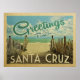Ce design de carte postale vintage de Greutages From Père Noël Cruz comprend une plage de sable avec une belle eau turquoise de l'océan et au-dessus de la mer, un ciel bleu avec des nuages blancs lustrés. Dans un style de voyage vintage.