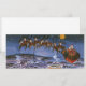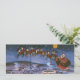 Illustration vintage de conception de vacances de Noël mettant en vedette le Père Noël avec son renne volant son traîneau pour livrer des jouets la veille de Noël. Le Père Noël survole les toits avec des cheminées de la ville endormie par cette nuit claire et belle avec des étoiles brillantes. Le texte se lit Joyeux Noël.