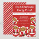 Une invitation aux couleurs rouge et blanc et cinq santas de pain d'épices, souriants.