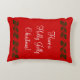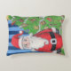 Coussin mignon d'accent de vacances montrant le père noël devant un arbre de Noël qui est décoré des beaucoup amusement et ornements uniques. Le verso du coussin est rouge lumineux et a du houx et un message qui lit "ont Noël gai de houx !" Des illustrations originales par l'Amas-Dunn d'Angela.