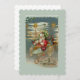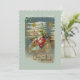 Voici Père Noël ! Il dirige son appareil volant extraordinaire à travers le ciel nocturne. Étoiles, serpentins et décorations fantaisistes se succèdent sur le pont de l'avion et son lot de jouets merveilleux pour Noël matin. L'image restaurée d'une carte postale victorienne présente un arrière - plan glacé, des accents dorés et de belles couleurs vives. Il est encadré de glace et d'ornements avec un village de Noël en arrière - plan.
