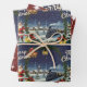 Ce papier d'emballage festif est parfait pour ajouter une touche de charme traditionnel de Noël à vos cadeaux ! Il comporte un motif extensible sur un arrière - plan bleu profond et enneigé. Chaque section comprend un Santa Claus classique tenant une lanterne brillante, un train à vapeur de style vintage traversant un village enneigé avec des maisons pittoresques et des pins, et un script "Joyeux Noël" entrelacé de cloches saintes et sonnantes. Le design général évoque une sensation nostalgique et magique d'hiver des merveilles, idéale pour les cadeaux de vacances.