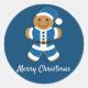 Sticker avec un Père Noël en pain d'épices souriant, en tenue bleue, et les mots "Joyeux Noël". Les mots peuvent être customisés comme vous voulez. Joyeux Noël!