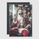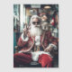 Une touche moderne du Père Noël classique, cette représentation élégante présente le Père Noël portant un costume rouge et or luxueux brodé, des lunettes de soleil rondes audacieuses et une barbe parfaitement taillée. Posant avec un signe de paix, il dégage un charme de vacances contemporain et cool dans un cadre cosy et festif.