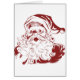 Illustration vintage de Noël représentant un Père Noël jovial en rouge. Il porte son chapeau flou caractéristique et une longue barbe blanche. Design kitsch classique des années 50.