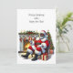 Illustration numérique du Père Noël noir assis devant une cheminée avec un arbre, des cadeaux et des bas. Le texte peut être customisé ou supprimé, y compris le message et l'adresse de votre entreprise à l'arrière. L'IA a aidé graphisme acheté à des fins commerciales. Oeuvre : DreamCafeArt