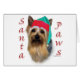 Votre chien de Noël préféré joue au Père Noël ~ ou aux Père Noël Paws. Ce design amusant de la race de chien AKC, Wire Silky Terrier, fait un cadeau de Noël unique sur un t-shirt, ornement, carte de voeux, tasse, autocollant et bien plus encore!