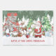 Papier enveloppé avec images de Noël du Père Noël, Snowman, Reindeer, Penguin et Père Noël chat dans la forêt enneigée hivernale