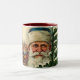 Carte de Noël Vintage - Père Noël tenant un arbre de Noël et des cadeaux. On y trouve l'expression "Joyeuses fêtes". Customisez ce produit gratuitement !
