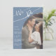 Célébrez votre histoire d'amour avec cette élégante invitation de mariage avec une incrustation de script "We Do" et la photo de votre couple préféré. Contre un arrière - plan bleu périwinkle souple avec des polices serif et manuscrites propres, cette conception inclut un code QR pratique sur le dos pour l'accès RSVP ou mariage au site Web. Idéal pour les mariages modernes, romantiques ou printaniers, et entièrement personnalisable pour votre journée spéciale.