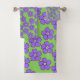 Ce kit de serviettes a un design ressort d'un champ de fleurs de perwinkle sur un arrière - plan vert.