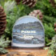 Both sides have row boats tied to the dock at Perkins Cove in Ogunquit, Maine. The front text says Perkins Cove and the reverse side text says Ogunquit, Maine.