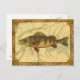 Cette impression illustre une image artistique d'un poisson perché jaune. L'arrière - plan affiche une carte géographique vintage dans les tons beiges clairs. Le cadre marron ressemble à un motif en bois ancien avec des fleurs jaune-rouge aux bords. Un grand ajout à votre collection de pêche !