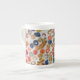 jolie porcelaine, bonne dimension effet brillant bien dans l'ensemble. Le motif et les couleurs sont réussis.Je trouve néanmoins dommage de ne pas occuper tout l'espace avc le motif car la partie rouge au dos de la tasse est trop présente et pas intéressante visuellement.