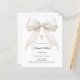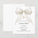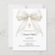 Célébrez le baptême de votre enfant avec cette élégante invitation ivoire à nœud, conçue avec un nœud en satin intemporel orné de perles délicates et d'une croix dorée classique.
