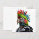 Funny Punk Rocker Parrot avec coiffure mohican portant une veste en cuir.