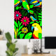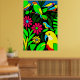 Perroquets - Toile Art Imprimer. Artiste : Roger Smith 29,00" x 42,51". Peinture originale de Roger Smith reproduite sur toile de 21,7 mil d'épaisseur (brillant). Caractéristiques revêtement spécial à l'encre assure la protection de la surface imprimée contre la fissuration lors de l'étirement Fabriqué à partir d'un mélange coton-poly sans additif. Résiste à la décoloration pendant plus de 75 ans.