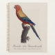Cette illustration présente un mâle Perruche soleil aux couleurs vives, réalisé dans un style classique d'histoire naturelle rappelant les premières œuvres ornithologiques. L'oiseau est représenté perché sur une branche texturée, son attitude calme mais alerte. Son plumage rayonne de teintes intenses - un orange ardent sur le visage et la poitrine, se fondant dans un jaune doré le long du corps, et contrasté par des rémiges vert foncé et bleu. La composition et les détails précis reflètent l'influence de Jacques Barraband, dont le travail de documentation des oiseaux exotiques combine la précision scientifique à l'élégance artistique. L'inscription « Perruche Ara, Guarouba mâle » lie davantage l'image aux interprétations historiques européennes des perroquets sud-américains.