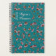 Pretty personal planner with coneflowers and bumblebees pattern. Tranquil teal blue color with design that will please any nature lover. Bees buzz all over the front and back cover visiting echinacea (coneflowers) with pink and rust brown blooms. A matching teal banner at the top holds your choice of title (the example includes a name), along with the year. This is the smaller 5.5 x 8.5 inch size, but the design also works for the larger size. A fun little page of stickers is included.
