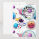 Featuring a cute astronaut floating among colorful planets, stars, and a magical galaxy background, this invitation is perfect for inviting friends and family to your child’s space-themed birthday party.