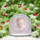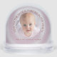Celebrate a precious new arrival with this charming personalized snow globe featuring a soft pink background, delicate white sparkles, and a round photo frame. The heartwarming phrase “New to the world, forever in our hearts” surrounds your baby’s photo, with a custom name and birth date below. A perfect keepsake gift for new parents, baby showers, or nursery décor. Ideal for commemorating the day sweet Olivia – or your little one – entered the world.