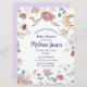 Personalized Baby Shower Invitation for a baby girl with floral border in pink and lavender colors.