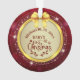 Commemorate the most special milestone with this stunning, personalized "Baby's First Christmas" ornament. Shaped like a classic round bauble, it features a luxurious red and sparkling gold design that will look beautiful on any Christmas tree. The front side showcases your precious Family photo nestled inside a gold frame, often wearing a festive Santa hat. The reverse side is customized with the baby's name and birth date/year (or the Christmas year) alongside the sweet "Baby's First Christmas" script. This durable, double-sided ornament is the ultimate first Christmas keepsake and makes a cherished, thoughtful gift for new parents, and grandparents.