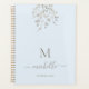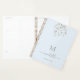 A modern monogram design featuring an elegant botanical watercolor. Script typography for your name and serif typography for your monogram on a blue background. The monogram and name can be easily personalized.