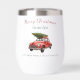 Featuring a charming vintage red car carrying a Christmas tree, this festive design brings classic holiday cheer in every sip.