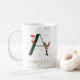 Make holiday gifting extra special with this personalized Christmas monogram mug featuring a deep green initial, cute Santa and reindeer characters, and a festive snowflake background. Add any name for a custom touch that’s perfect for kids, adults, teachers, coworkers, Secret Santa gifts, or stocking stuffers. Printed in high quality with vibrant color, this classic ceramic mug is ideal for hot cocoa, coffee, or winter drinks. A charming and joyful holiday keepsake everyone will love.