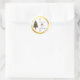 Add a festive and elegant touch to your holiday gifts and décor with this charming Christmas sticker! Featuring a beautifully designed Christmas tree inside a golden circle, the sticker is accented with two golden snowflakes at the top and bottom and a festive red bow between the text areas.. . .