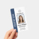 Project a trustworthy and established image with this Professional Navy Blue Company Photo ID Badge, the ideal security solution for corporate offices and healthcare facilities. This double-sided badge features a classic navy blue sidebar and a clean, high-contrast layout that ensures name, role, and department are instantly readable. The template is designed for easy personalization with a staff photo, company logo, and an employee ID number, while the back includes essential space for return instructions and a custom QR code or barcode. Built for daily use, this durable plastic card provides a polished finish to your professional uniform or event security protocol.