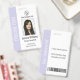Bring a touch of modern color to your workplace with this pastel purple photo ID badge, designed for designers, artists, and innovative corporate staff. This vertical identification card features a soft lavender side banner that elegantly displays your department name in bold, white lettering. The template is fully customizable, allowing you to easily swap in a professional headshot, company logo, and staff details including ID numbers and expiration dates. With a functional back design featuring a scannable barcode and return address info, this badge combines trendy aesthetics with essential office security.