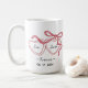 Celebrate your love with this personalized couple mug, featuring a minimal hand-drawn line art design with two hearts, custom names, and a meaningful date.
