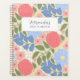 The hand-drawn floral design bursts with color—pink chrysanthemums, blue daisies, bell-shaped blooms, and leafy accents—set against a soft beige background for a warm, inviting look. The central label can be personalized with your name, subject, or any title that fits your lifestyle.