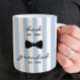 Celebrate a special milestone with this personalized Grandad mug, a thoughtful gift for a new grandfather. Featuring soft blue stripes and a classic bowtie design, this mug highlights the meaningful transition from dad to grandad in a clean, timeless style. Perfect for Father’s Day, Grandparents Day, or welcoming a new grandchild, this custom mug is both practical and sentimental. Personalize with names and details to create a one-of-a-kind keepsake he’ll use and cherish every day.