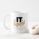 Celebrate your tech team with this sleek and minimalistic “IT Squad” design in bold black and gold script. Featuring a witty quote, “Solving problems you didn’t know you had,” it’s perfect for coders, developers, and IT professionals who keep things running behind the scenes. Optional name personalization on the back makes it a thoughtful gift for any tech wizard. Clean, professional, and team-ready.