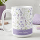 Bring a gentle touch of nature to your daily routine with this personalized lavender floral mug. Delicate hand-painted-style wildflowers in soothing shades of lavender and soft violet wrap gracefully around the mug, creating a calm, timeless look inspired by cottage gardens and spring meadows. Easily personalized with your name or your giftee's name, this mug feels both personal and effortlessly elegant - perfect for slow mornings, cozy afternoons, or thoughtful gifting.
