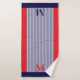 Create a personalized oasis in your bathroom with our monogram bath towel set. The sleek and minimalist design in navy blue and bright red on a white background adds a touch of modern coastal elegance. Personalize it with your initials and create a sophisticated haven in your home. This also makes for the perfect personalized vacation gift for a loved one.