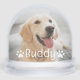 Custom pet photo snow globe features a favorite picture of your furry family member along with their name and paw print accents that can personalized. Two sided design allows you to use the same photo and pet name on both sides, or you can choose to customize it with a different photo or pet dog or cat on each side.
