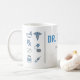 This modern pharmacist mug uses a clean split layout for strong readability and a professional feel. The left side features a minimal column of pharmacy icons, while the right side highlights a bold personalized name in a modern sans-serif font. A thin divider line separates the sections, creating a balanced and organized look. Finished in calm blue and gray tones on a white background, this full-wrap 11oz design is ideal for pharmacists, pharmacy students, or workplace desk use. Delivered as a 300 DPI PNG with no mockup.
