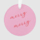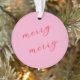 This pink and red modern Christmas photo ornament becomes a heartfelt holiday keepsake with its tender blend of joyful color and warm, memory filled design. The soft pink background paired with the flowing red script creates an inviting, sentimental feel that captures the sweetness of the season, while the repeated festive message adds a gentle, uplifting touch that feels personal and full of cheer. On the reverse side, the vibrant red striped frame beautifully surrounds one cherished photo, giving families a loving way to honor a treasured moment and revisit it every year as the ornament returns to the tree. The combination of bright, joyful tones and simple, elegant typography creates a touching tribute to family togetherness, making this ornament a meaningful way to celebrate love, tradition, and the magic of the holidays.