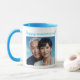 Celebrate love and cherished memories with this beautiful custom photo anniversary mug. Featuring a heartfelt “Happy Anniversary!” message and your favorite photo, this personalized coffee mug turns a special moment into a lasting keepsake. Perfect for celebrating wedding anniversaries, vow renewals, or milestone years together, it makes a meaningful gift for couples, parents, or loved ones. The soft blue handle and interior add a modern, elegant touch. Ideal for morning coffee or evening tea, this mug is a daily reminder of love, commitment, and the memories that matter most.